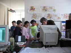 Proyecto "La Ciudad y yo" así trabaja un arquitecto, cinco niños de visita en la oficina de Bert Dirrix.